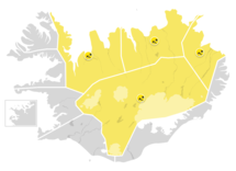 Gefnar hafa verið út gular viðvaranir fyrir fjögur spásvæði: Strandir og Norðurland vestra, Norðurland eystra, Miðhálendið og Austurland að Glettingi. Viðvaranirnar taka gildi kl. 17, fimmtudaginn 3. september. Útlit er fyrir norðan hvassviðri eða storm, 15-20 m/s og talsverða úrkomu. Hiti verður nærri frostmarki og því líklegt að úrkoma falli sem slydda ofan 200 metra yfir sjávarmáls og sem snjókoma ofan 400 metra. Veðrið gæti skapað vandræði fyrir búfénaði, einkum kindum til fjalla. Líklegt er að færð spillist á fjallvegum og ferðalangar á svæðinu ættu að huga vel að veðurspám.